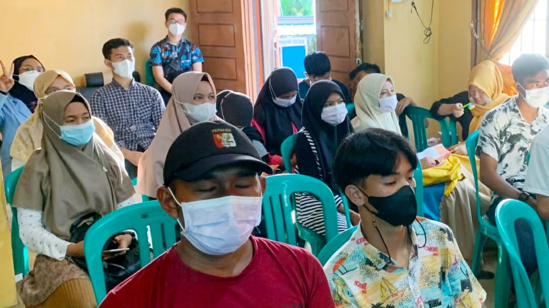 Seorang dosen dari Fakultas Kedokteran Universitas Riau dalam kegiatan penyuluhan infeksi menular seksual di Kampung Pelita Buluh Cina, Kabupaten Kampar. IST