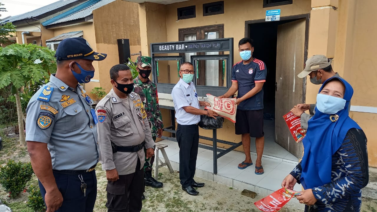 Camat Tambang, H Abukari, memberikan bantuan sembako kepada keluarga yang tengah menjalani masa isolasi