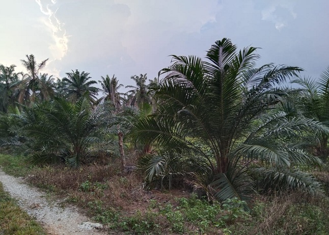 Binar tatapan matanya jelas sekali. Ada haru, karena masih bisa menyaksikan kebunnya ditumbuhi kelapa sawit menghijau.
