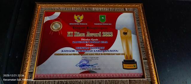 Adapun kategori piagam penghargaan KI Award 2023 yang diperoleh Pemkab Rokan Hilir adalah kategori Peringkat Informatif se Pemerintah Kabupaten/Kota. Untuk tahun ini, kategori KI Award diantaranya Kategori desa, SMA Sederajat, Penerima Hibah Provinsi Kabupaten Kota, Perguruan Tinggi, Partai Politik, BUMD, KPU, Bawaslu, Organisasi Perangkat Daerah, Instansi Pertikal dan Kategori Kabupaten/Kota.