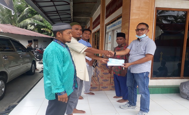 PLH Humas PT Tasma Puja, serahkan santunan anak Yatim kepada pengurus anak yatim Desa Koto Perambahan.