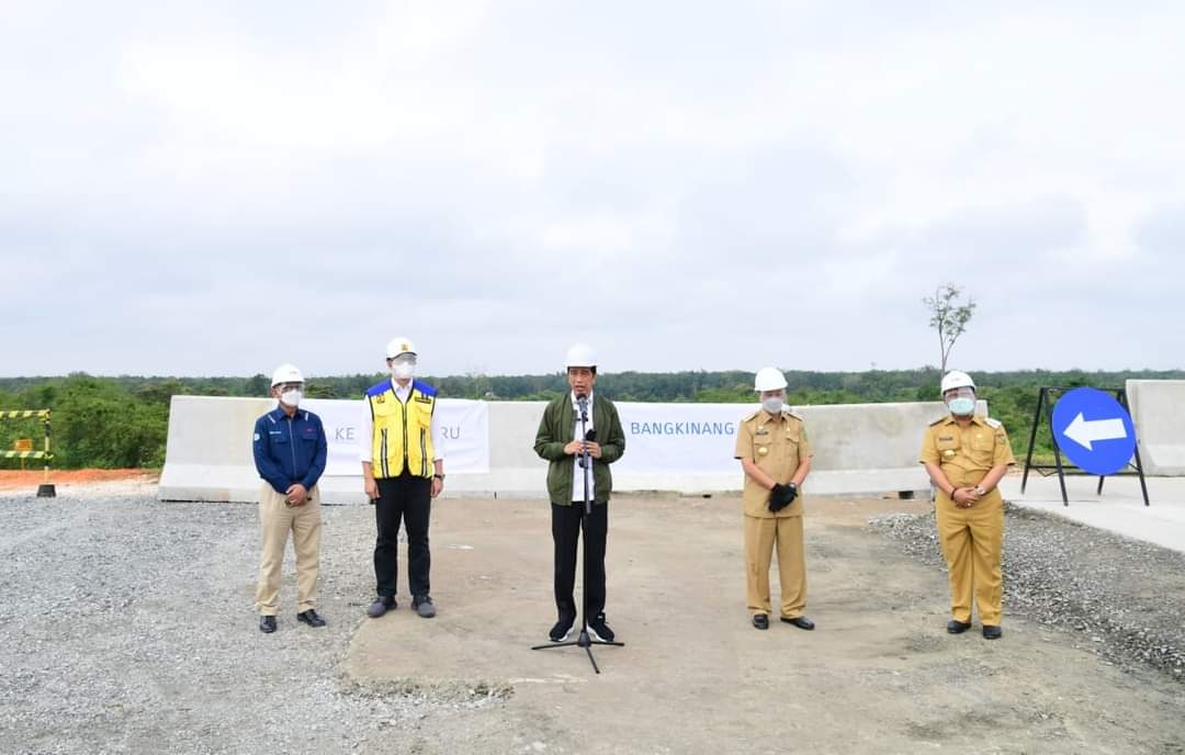 Dalam kesempatan ini Jokowi yang juga melaksanakan beberapa agenda di Riau hari ini sebelum terbang ke Kepulauan Riau menyampaikan, pembangunan Jalan Tol Seksi Pekanbaru-Bangkinang telah berjalan sepanjang 40 kilometer dan progresnya makin hari makin panjang.