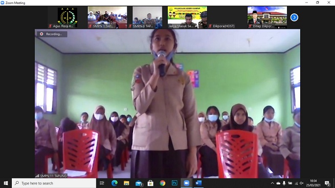 Kasi Intel Kejari Kampar Silfanus Rotua Simanullang SH MH, mengatakan, pelaksanaan kegiatan Jaksa Masuk Sekolah (JMS) Kejaksaan Negeri Kampar 2021 pada hari ini dilaksanakan secara Virtual di SMPN 1 Tapung Hilir, SMPN 5 Tapung Hilir, SMPN 8 Tapung dan SMPN 11 Tapung.