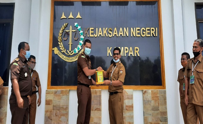 Kejari Kampar Beri Cendera Mata Kepada Sekolah Yang Ikut JMS