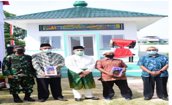 Gubernur Riau, H Syamsuar dan Danrem 031/WB Brigjen TNI Syech Ismed, saat peresmian mushalla yang diperkirakan dengan nama terpanjang di dunia