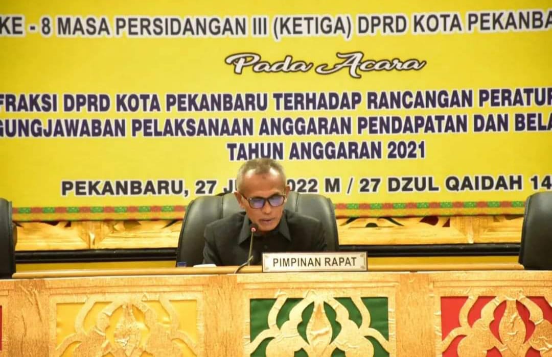 PEKANBARU, VokalOnline.Com - DPRD Pekanbaru terus mengebut tahapan pembahasan, Ranperda Pertanggungjawaban Pelaksanaan APBD 2021. Pada Selasa, (28/6/2022), DPRD menggelar Rapat Paripurna Jawaban Pemerintah Terhadap Pandangan Fraksi Pelaksanaan APBD 2021.