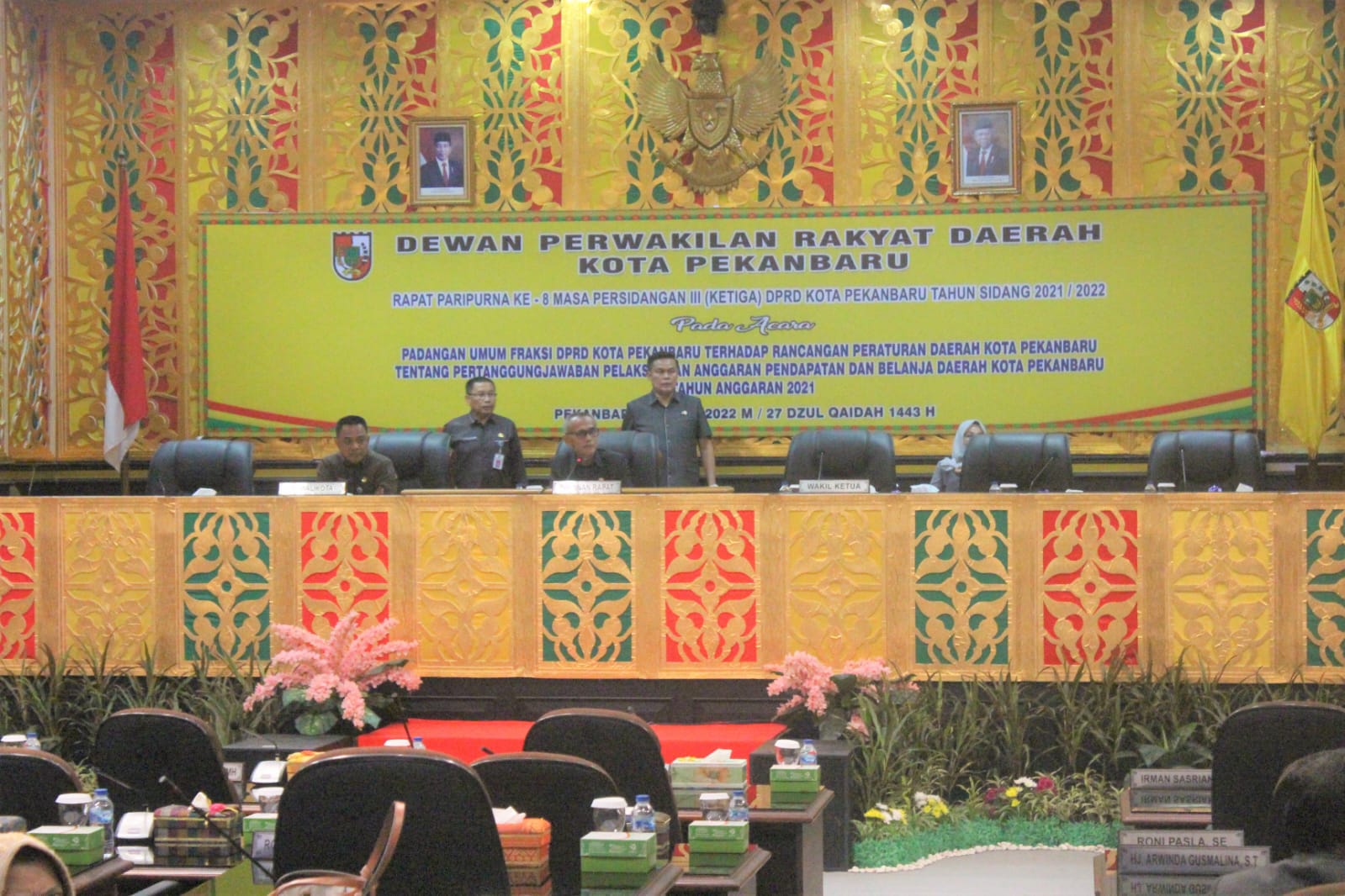 Hal ini disampaikan Anggota DPRD Pekanbaru, dalam Paripurna Pandangan Umum Fraksi Tentang Pertanggungjawaban pelaksanaan APBD 2021, Senin (27/6/2022).