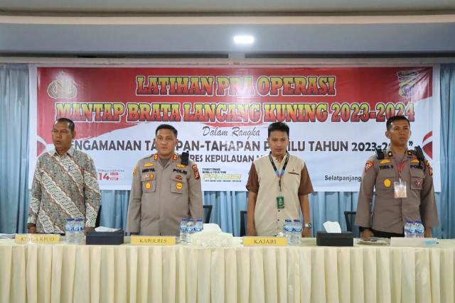 Dalam sambutannya, AKBP Andi Yul menyampaikan bahwa kegiatan latihan pra operasi Mantap Brata Lancang Kuning 2023-2024 itu bertujuan untuk meningkatkan pengetahuan dan kemampuan personel Polri dalam menjaga keamanan dan kelancaran penyelenggaraan Pemilu di Kepulauan Meranti.